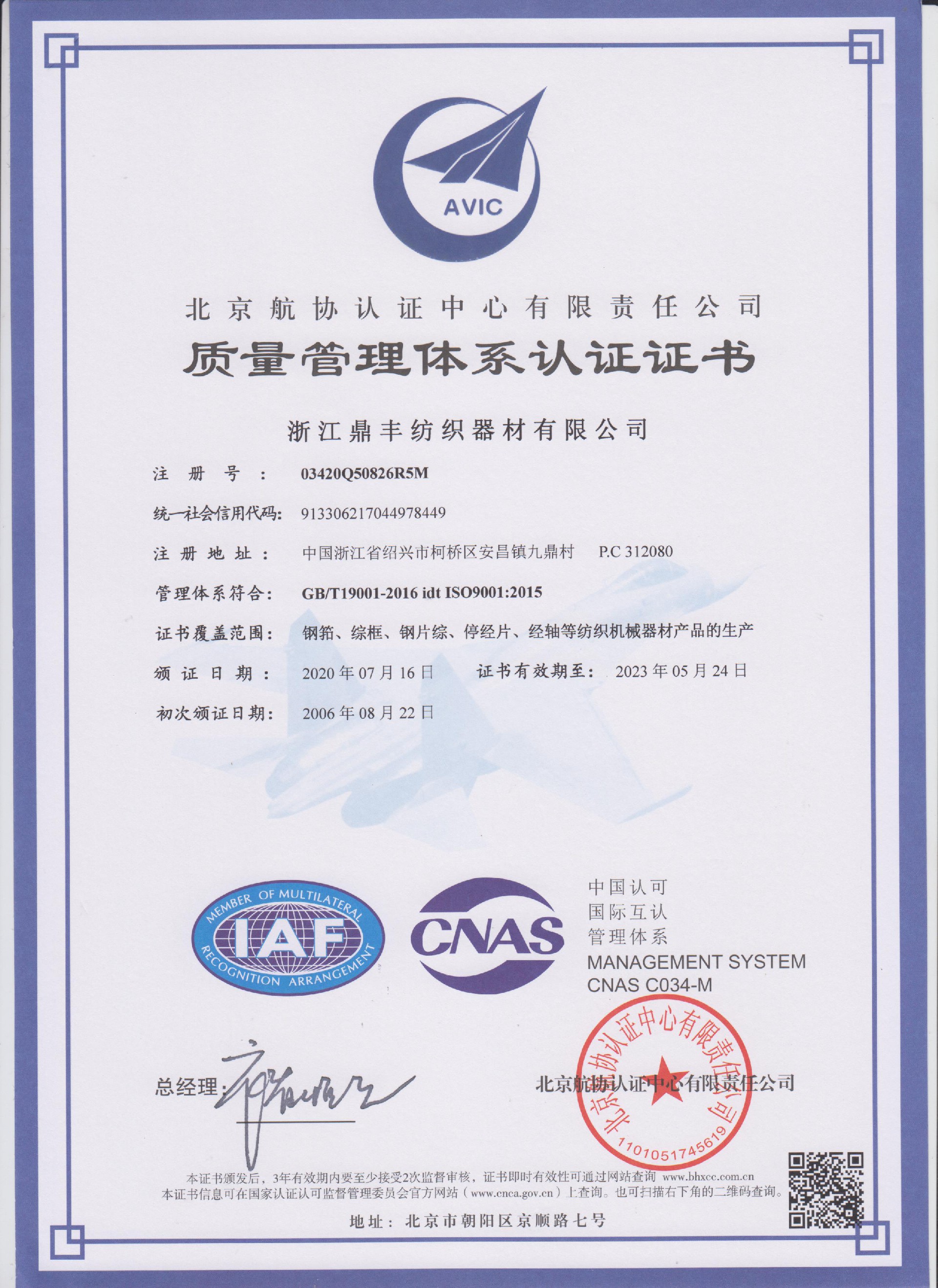 公司現(xiàn)有固定資產(chǎn)6000余萬元,員工300余人,現(xiàn)具有年產(chǎn)噴氣異型筘12萬米,劍桿筘32萬米,噴水筘5萬米,綜框20萬片,鋼片綜2億片,停經(jīng)片1.5億片, 織軸1.2萬套的生產(chǎn)能力。公司“越泉”商標(biāo)被評為“中國馳名商標(biāo)”。公司通過ISO9001 :2015國際質(zhì)量體系認(rèn)證,ISO14001:2015國際環(huán)境管理體系認(rèn)證,ISO45001:2018國際職業(yè)健康安全管理體系認(rèn)證,噴氣織機用鋼筘和織機用鋁合金綜框獲得“浙江制造”品牌認(rèn)證,公司擁有自營進出口權(quán),產(chǎn)品暢銷全國并遠銷印度、巴基斯坦、土耳其、埃及、哥倫比亞、意大利等國家和地區(qū)。